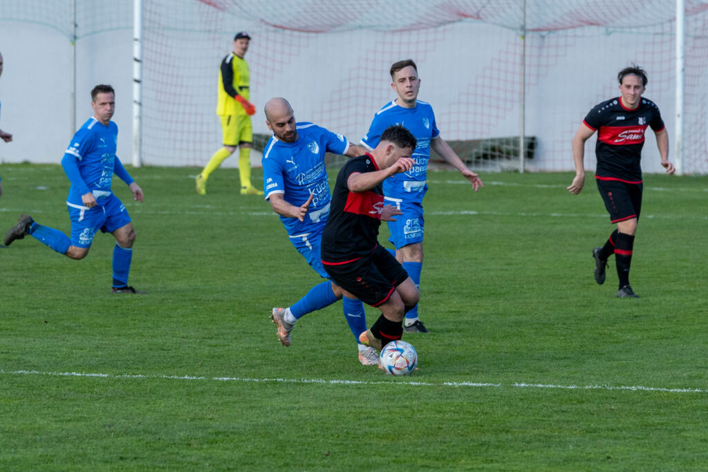 Bei herrlichem Fußballwetter entwickelte sich zu Beginn eine ausgeglichene Begegnung, bei der SVSF versuchte über die Seiten in die Spitze zu kommen, die Gäste aus Puchberg mit gewohntem körperlichem Einsatz dagegenhielten und selbst versuchten, mit weiten Bällen auf den agilen Cagdas Dogan gefährlich zu werden. So war es den Pottschachern vorbehalten, mit dem ersten gefährlichen Angriff in Führung zu gehen. Nach einem Ballgewinn im Mittelfeld setzte David Pichler Kevin Senft an der zweiten Stange in Szene, der zur frühen Führung einschoss – 1:0 (6.). Der Jubel über die Führung war noch nicht einmal verebbt, wären die Gäste aus Puchberg postwenden zum Ausgleich gekommen, doch Braunstorfer scheiterte aus wenigen Metern an einer starken Fußabwehr von SVSF-Schlussmann K.Lechner (7.). Doch nur wenige Minuten später machte es der Puchberger Flügelspieler besser. Nach einem Aufbaufehler konnten die Pottschacher in der Mitte den Ball nicht klären, der abspringende Ball landete direkt vor Braunstorfer, der aus 8m keine Gefangenen machte – 1:1 (12.). Ab diesem Gegentor merkte man den Rot-Weißen mal wieder die Verunsicherung an, war von nun an bis zumindest zum Seitenwechsel deutlich im Hintertreffen. Puchberg mit ihren Aktionen immer ein Ticken schneller, auch einsatz- und zweikampfmäßig waren sie den Pottschacher überlegen. So kamen die Gäste in Minute 24 zur nächsten großen Chance, Tütti Röchers aufs kurze Eck angetragene Kopfball konnte von K.Lechner gerade noch von der Linie gekratzt werden. Wenige Minuten später sollten die Puchberger erstmals in Führung gehen. Nach einem weiten Ball auf Dogdan lässt dieser mehrere Pottschacher Spieler schlecht aussehen, sein Abschluss überlegt ins lange Eck – 1:2 (28.). In der letzten viertel Stunde vor der Pause sollten beide Mannschaften keine Großchancen mehr vorfinden, somit ging es für den SVSF mit einem knappen Rückstand in die Pause, in der sich die Pottschacher vornahmen, in Durchgang zwei mutiger und vor allem aggressiver zu Werke zu gehen.