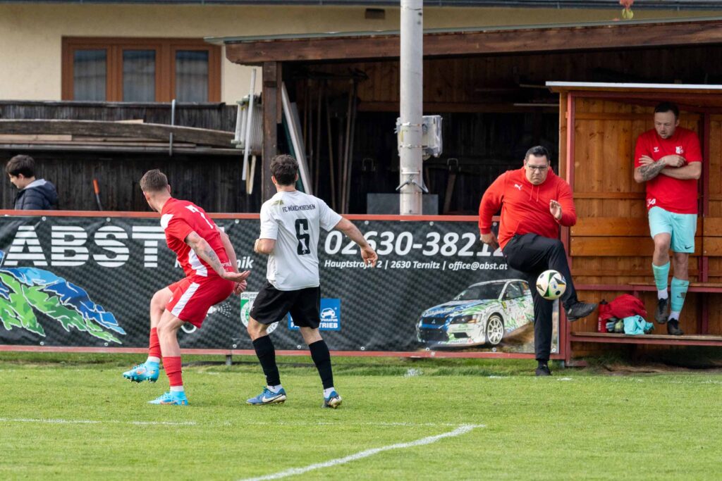 Nach der Pause ging es munter weiter. Bereits wenige Sekunden nach dem Seitenwechsel drosch Philipp Egger einen Ball völlig freistehend über das Tor (46.). Fünf Minuten später gab es für Mönichkirchen ein Elfmetergeschenk des Unparteiischen, welchen Balagovic scharf verwertete. SVSF-Schlussmann Christoph Hackl dabei ohne Abwehrmöglichkeit – 6:2 (51.). Doch wie bereits in der ersten Halbzeit hatte der SVSF in Form von Mark Simon die perfekte Antwort. Nach Zuspiel von Lukas Klammer schnürte Simon überlegt seinen Trippelpack (55.). In der letzten halben Stunden verpasste der SVSF sein Torkonto zu erhöhen. Sowohl Norbert Kokenzsky (61.), der eingewechselte Görkem Orhan (67.) als auch Lukas Klammer (75.) ließen Top-Möglichkeiten leichtfertigst liegen. Zudem hatte der SVSF mit zwei Aluminiumtreffern (80., 87.) Pech. So war es dem an diesem Tag fantastisch aufgelegten Mark Simon vorbehalten, mit seinem vierten Treffer an diesem Tag den 8:2 Endstand herzustellen (84.).