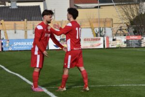 2:0 (16.) Simon (FE., A.: Klammer): Lukas Klammer wird im Strafraum zu Boden gerissen. Mark Simon schickt beim fälligen Elfmeter den generischen Torhüter ins falsche Eck!
